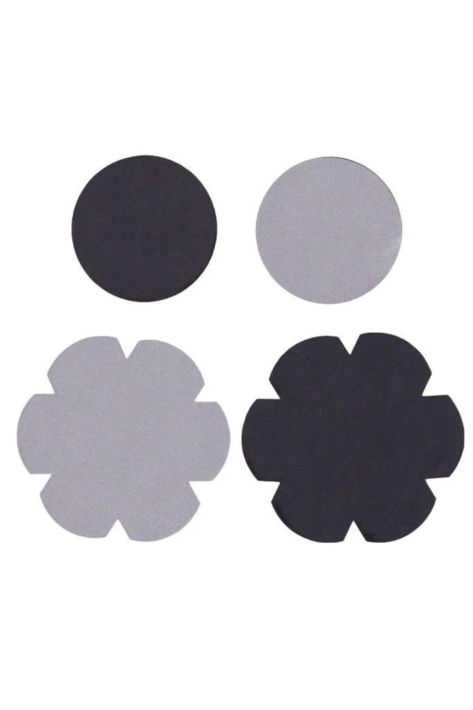 - 2 patchs en forme de fleur : 1 noir et 1 argenté. Taille 74×70 mm