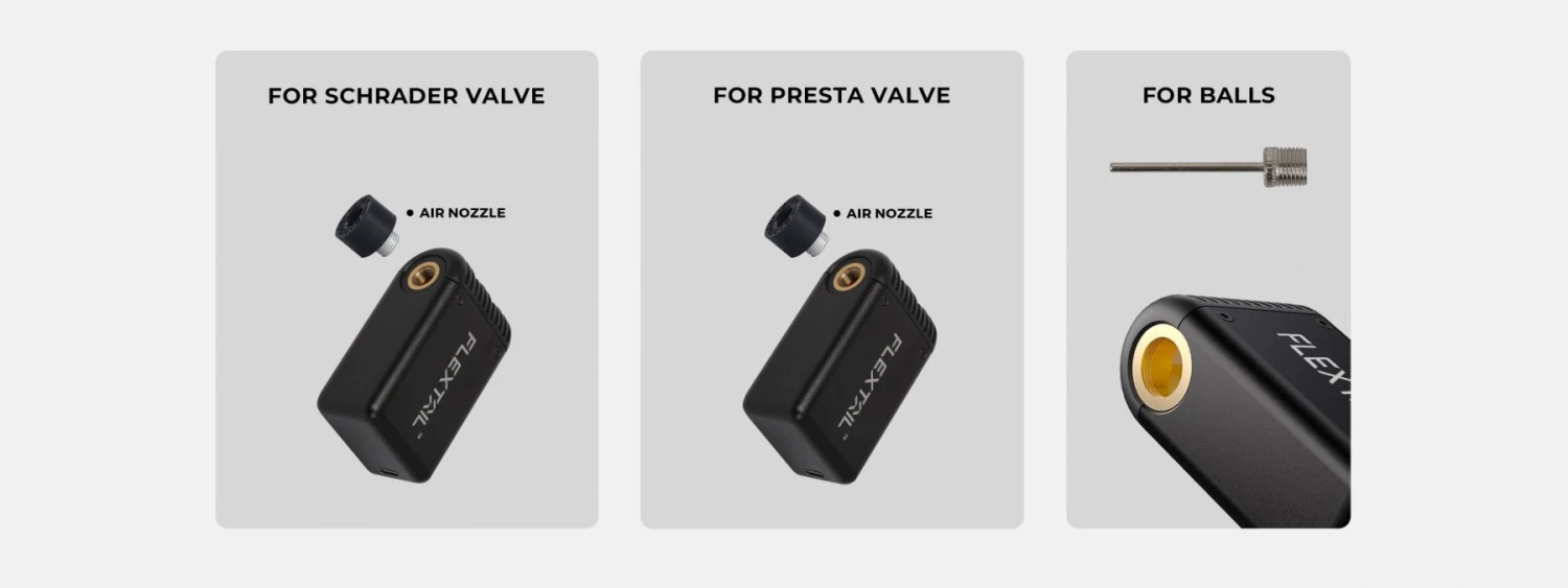 La Tiny Bike Pum pest compatible avec les valves de vélo Schrader et Presta. Elle est livrée avec une buse d’air en acier permettant aussi de gonfler un ballon de basket, de football, etc…