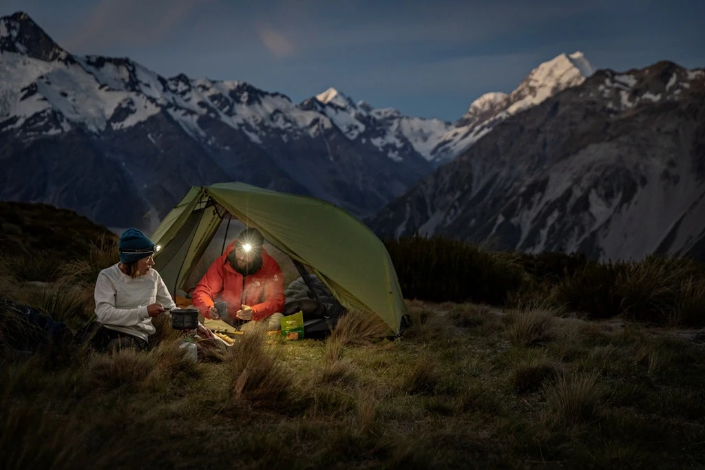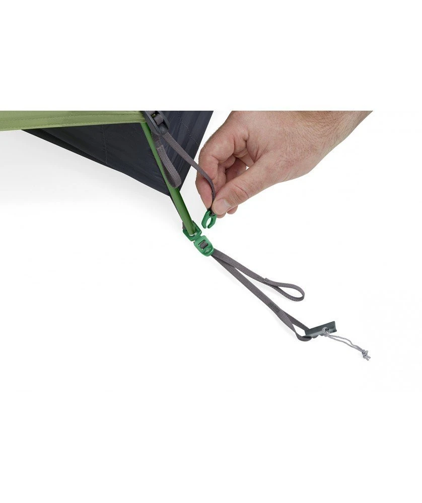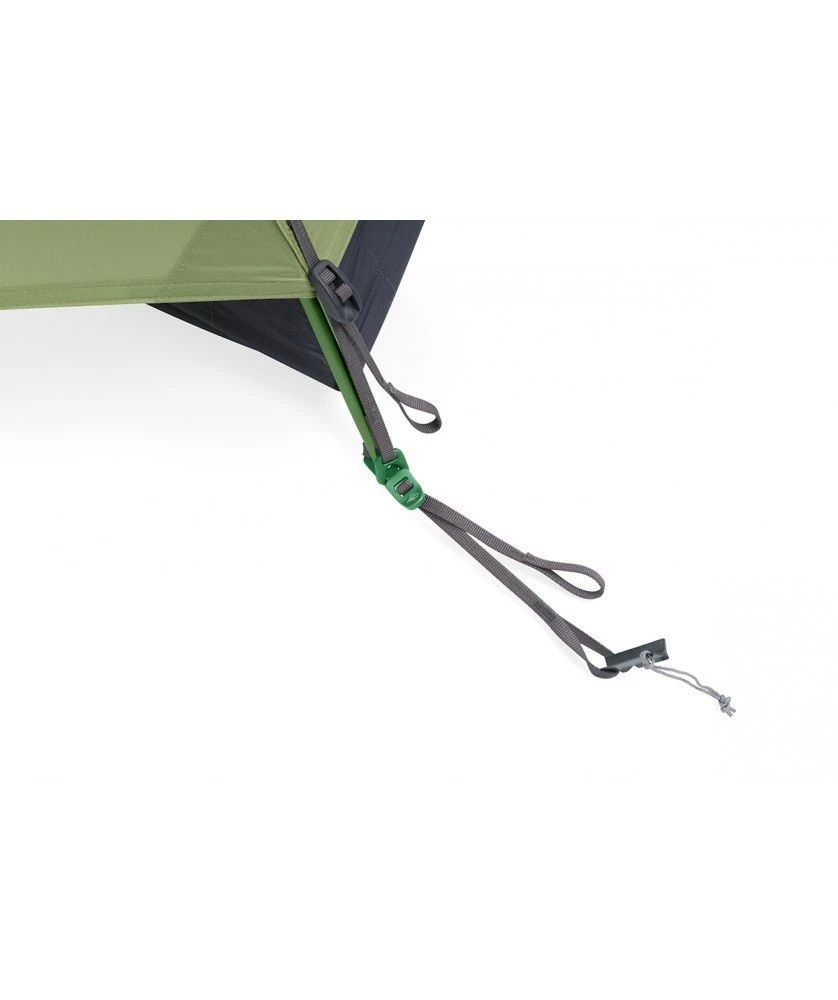 La tente Alto TR2 Bikepack dispose d’un grand volume intérieur grâce à son système d’arceaux. L’arceau supérieur Tension Ridge en forme d’ailes déployées, permet d’obtenir des grandes portes, hautes et larges. Combiné avec une structure en dôme semi-autoportante, ses parois verticales laissent place un habitacle très généreux. Afin d’atteindre un poids minimaliste, la tente a des dimensions un peu plus réduites au niveau de la surface au sol.