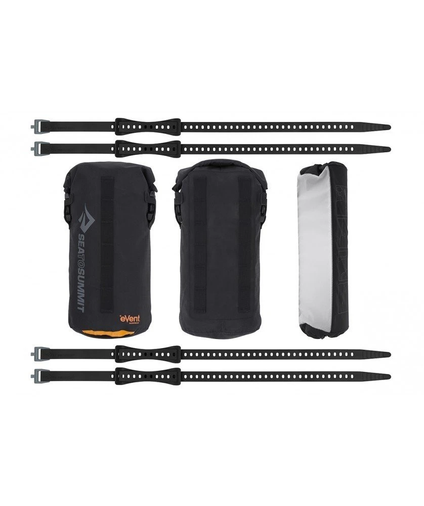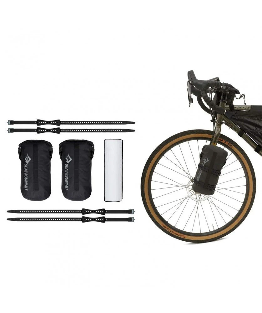 Cette version spéciale bikepacking dispose d’un jeu d’arceaux plus court une fois replié, facilitant leur transport sur un vélo. La housse de rangement, ou plutôt les housses sont spécialement conçues pour être fixées diréctement sur votre vélo. Elles sont en Evac Dry 420D, un tissu imperméable et robuste. Des sangles StretchLoc sont également comprises.